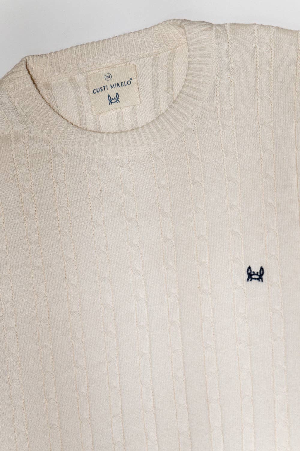 Vernieuw je stijl met deze lichtbeige herentrui met kabelpatroon, een veelzijdig kledingstuk dat comfort, elegantie en premium details combineert. Gemaakt van zacht, hoogwaardig materiaal, heeft het een onderscheidend verticaal kabelpatroon, een klassieke ronde hals en geribde afwerkingen aan de manchetten en zoom voor een perfecte pasvorm.