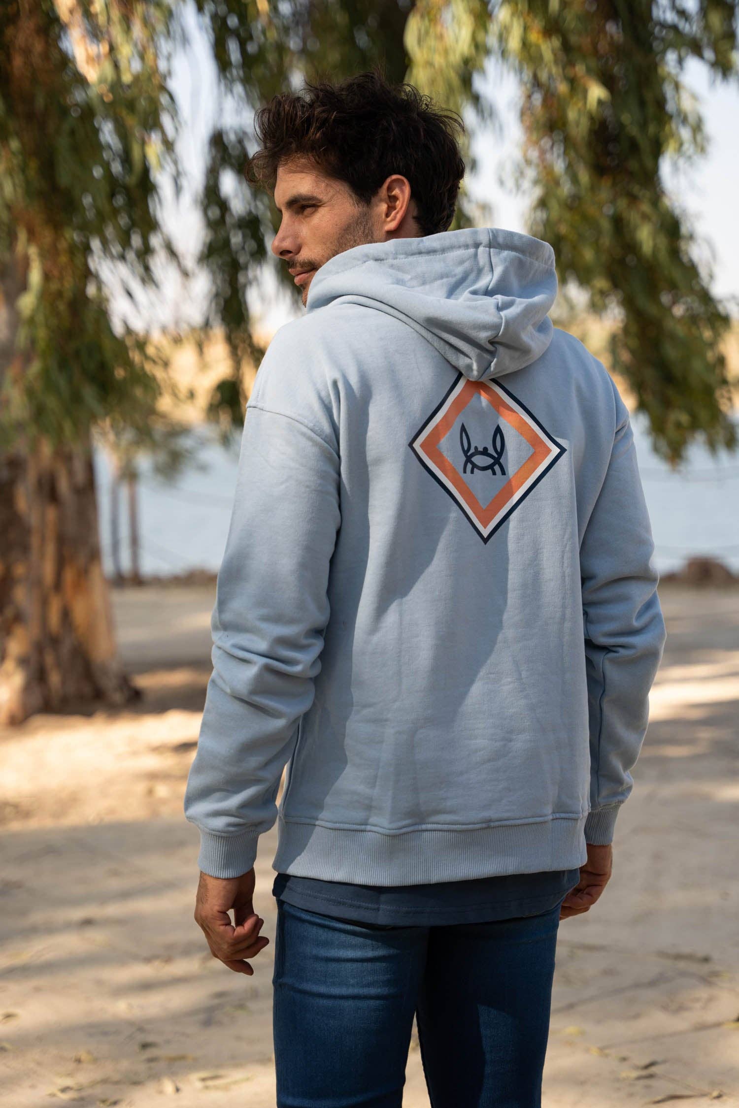 Lichtblauwe hoodie van 100% katoen. Opdruk met het logo op de linkerborst en achterkant.